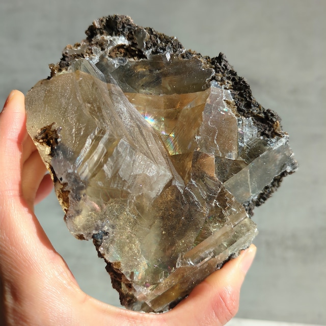 ▼動画はこちら▼ https://www.instagram.com/p/DTPJKIEkVDB/ インドからやってきた、カルサイトとカルセドニーが共生した原石です。 母岩に包まれた、力強く虹の入るイエローのカルサイト。 透き通る中を除くと、カルセドニーの結晶が無数に煌めく幻想的な世界が広がります。 光を浴びると母岩もキラキラと煌めき、どこをみても見応えのあるずっと眺めていられるピースです。 まさに地球の生み出したアート作品で、その美しさとどっしりとした存在感からは大地の力強さを感じさせてくれます。 ※母岩から小さな粒がぽろぽろと落ちやすいです。ご了承くださいませ。 ✵ サイズ ✵ 重量 約737g 約 98mm×105mm×高さ63mm ✵ ご購入前にご確認ください ✵ ・ラッピングサービスは行なっておりません。 ・天然石は自然が作り出した鉱物であるため、微細の傷、内包物、クラックなどが見られることがあります。結晶ができあがる過程で自然に生じた美しい天然石の証であり、魅力でもあります。そのままの姿をぜひお楽しみください。 ・ご利用のモニターや撮影環境により、色や印象が若干異なることもございますので予めご了承ください。 ・一点もののため返品交換はできません。