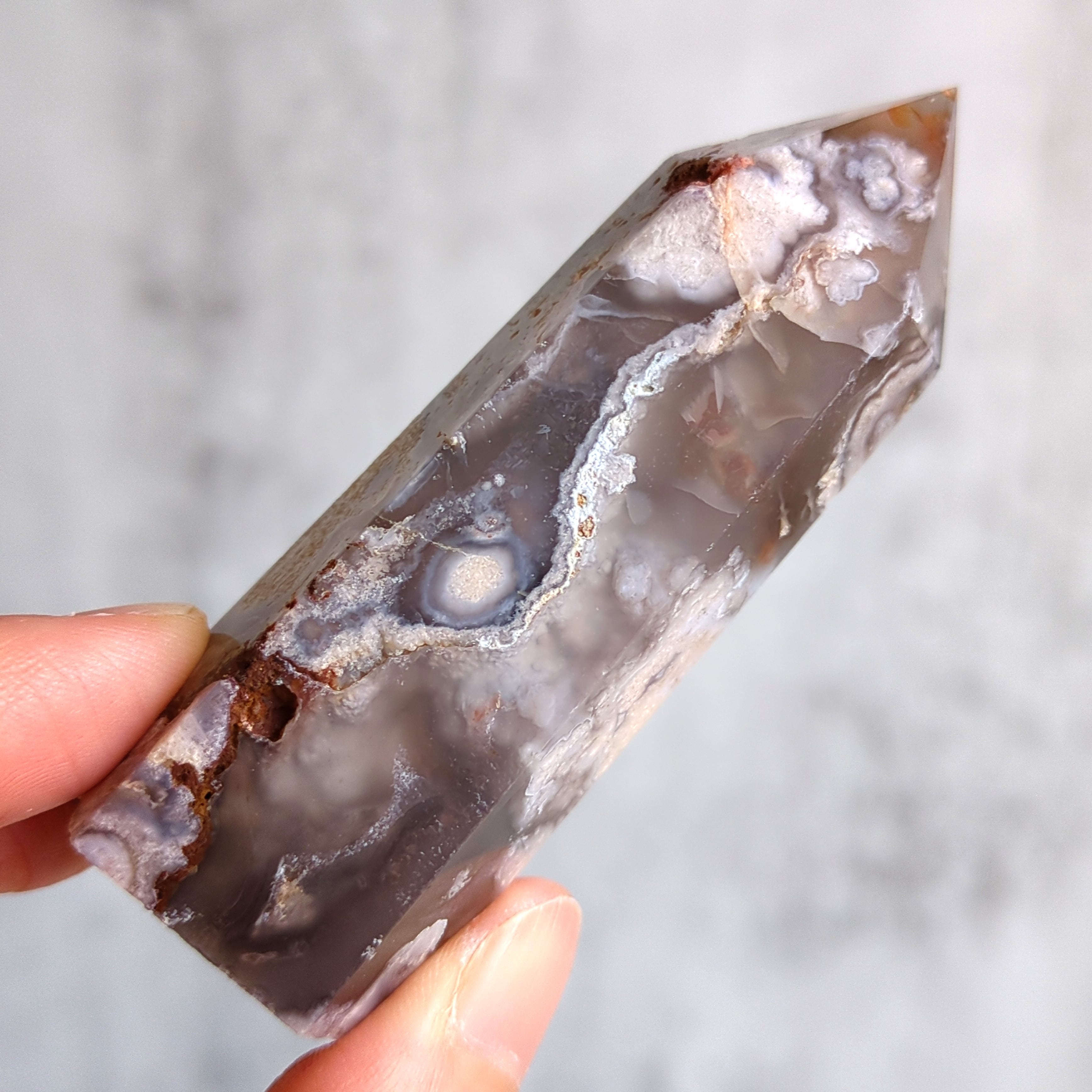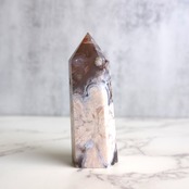 グレーのアゲートに、淡いピンクのお花が大胆に入ったシックながらも力強いタワー。