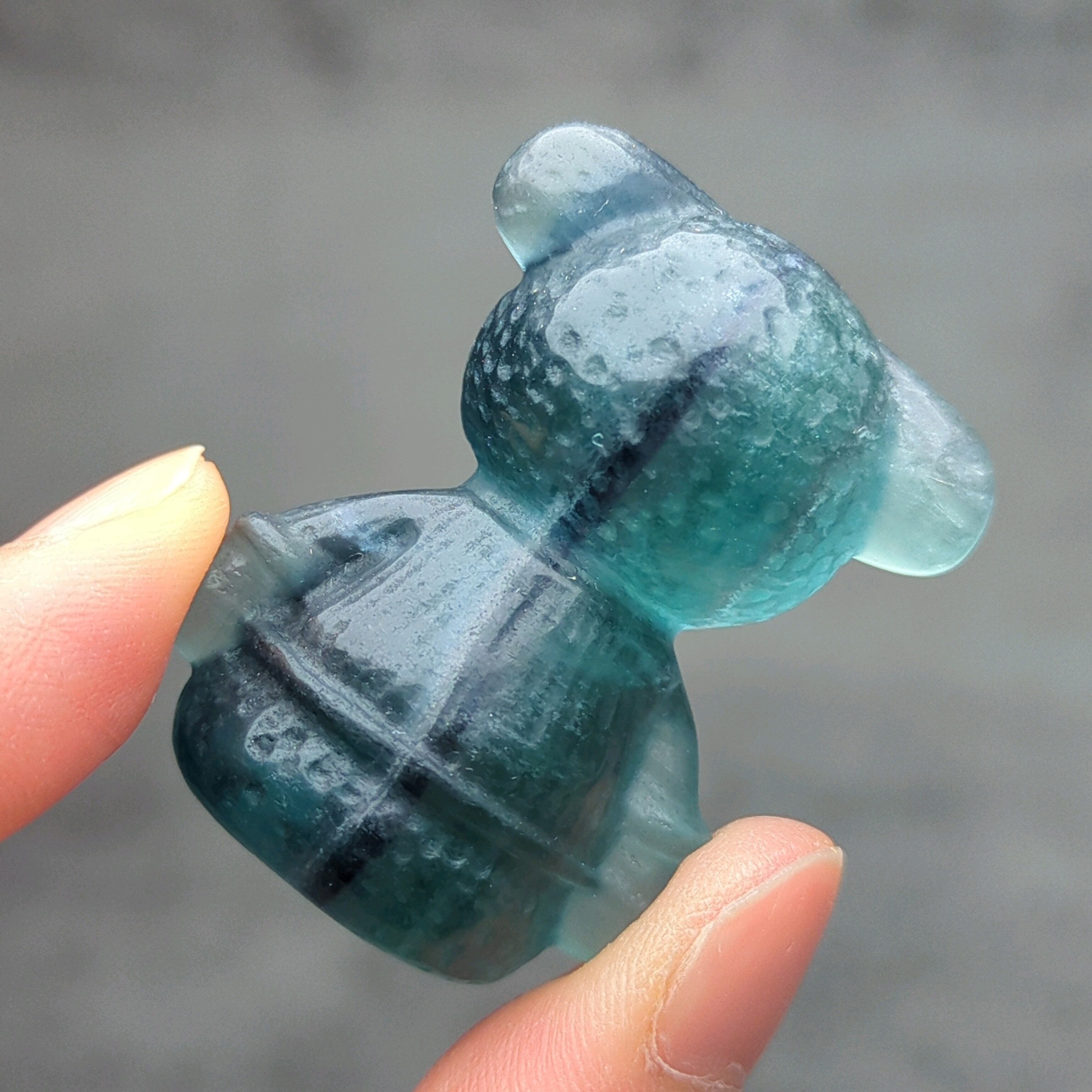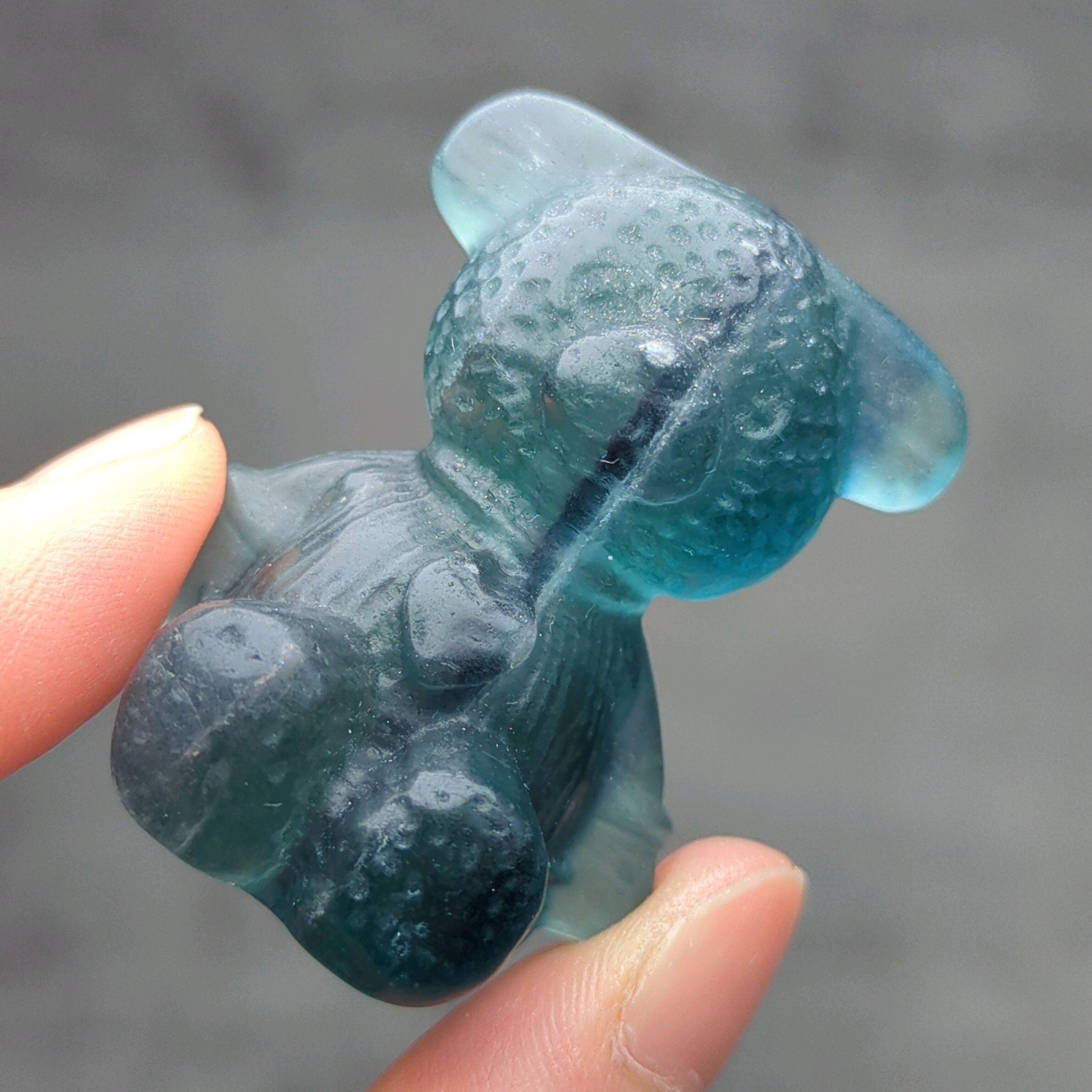 落ち着いたグリーンブルーが美しい、キャンディフローライトのテディベアです。