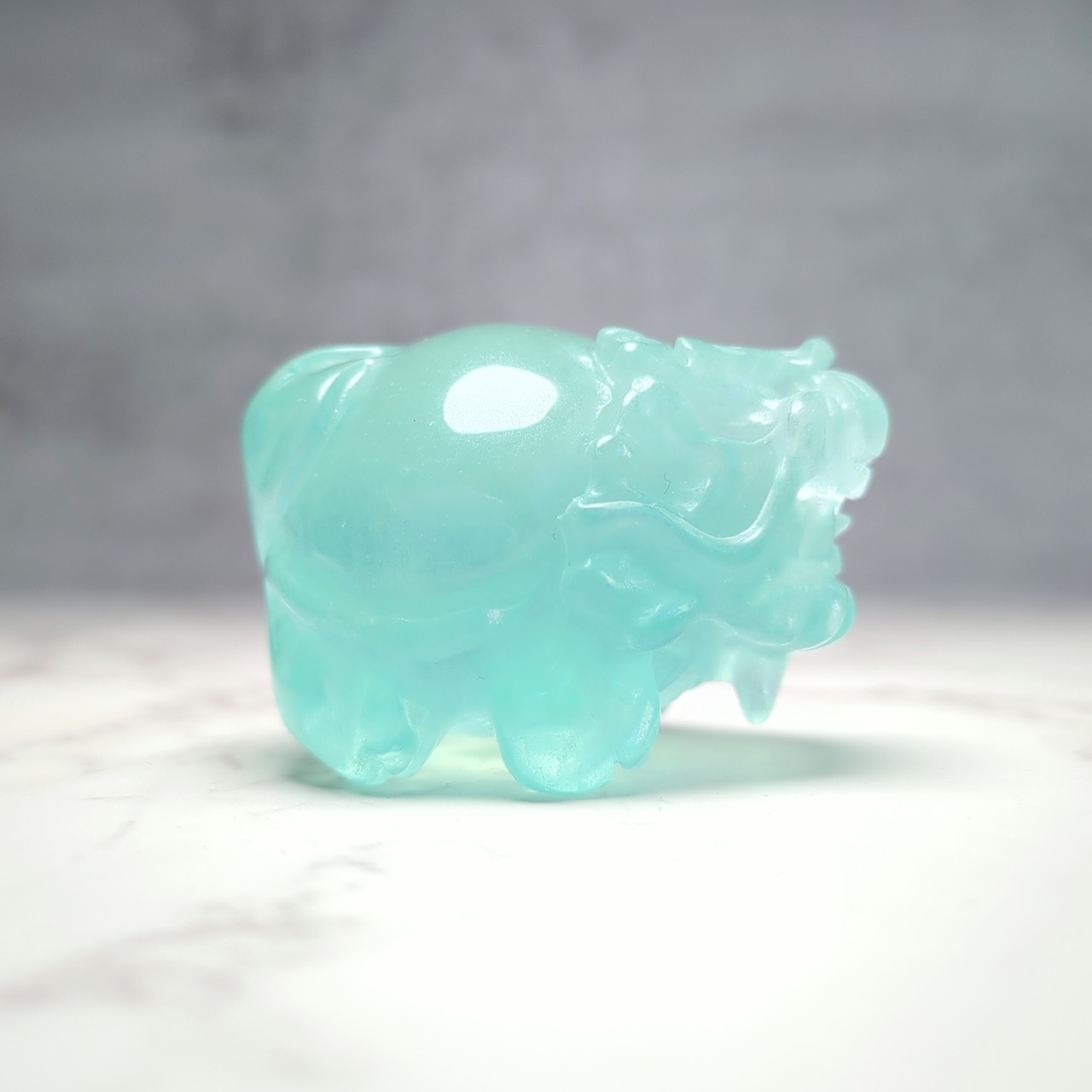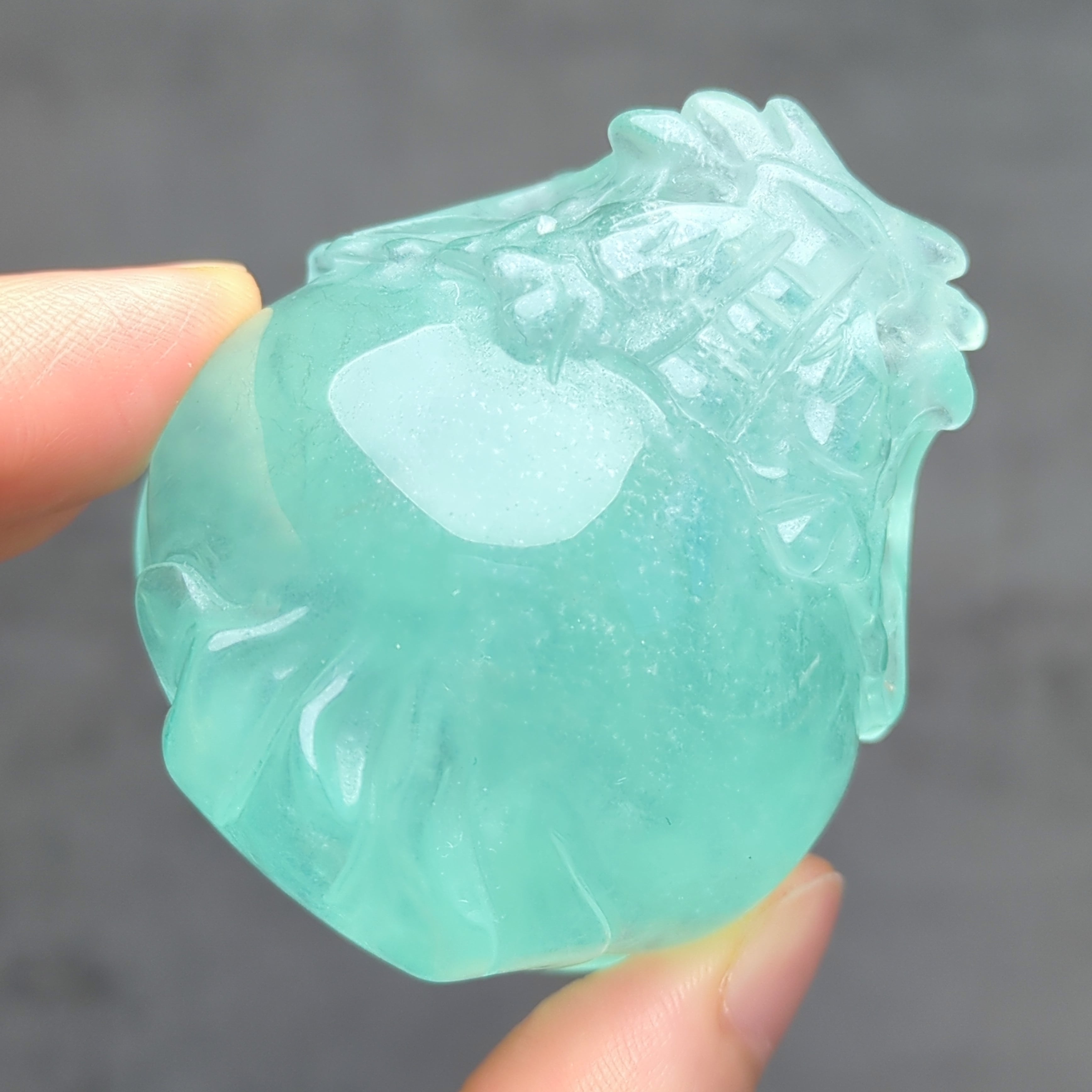 クリアなグリーンがかったブルーが澄んだ湖のように美しい、ピュアなピース。