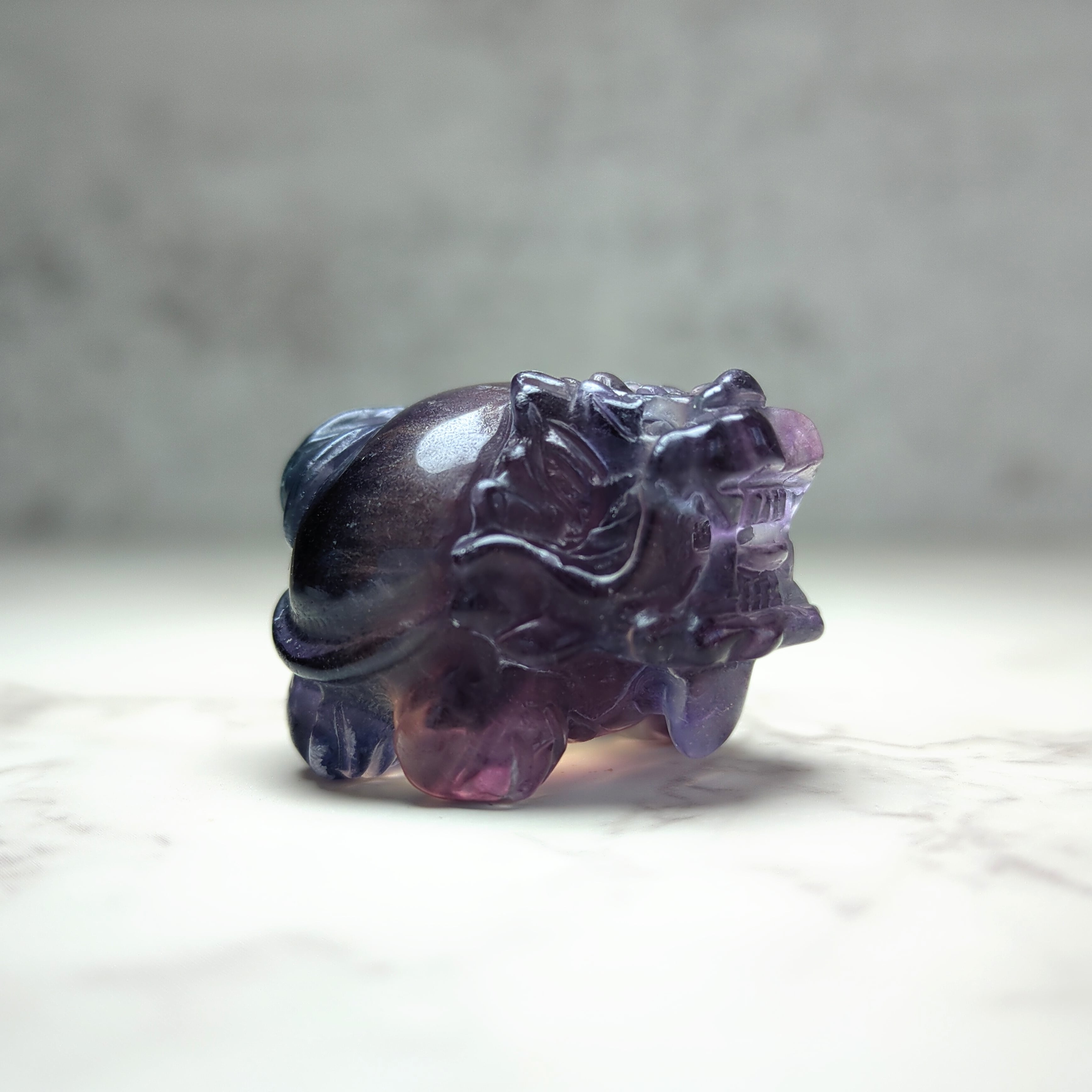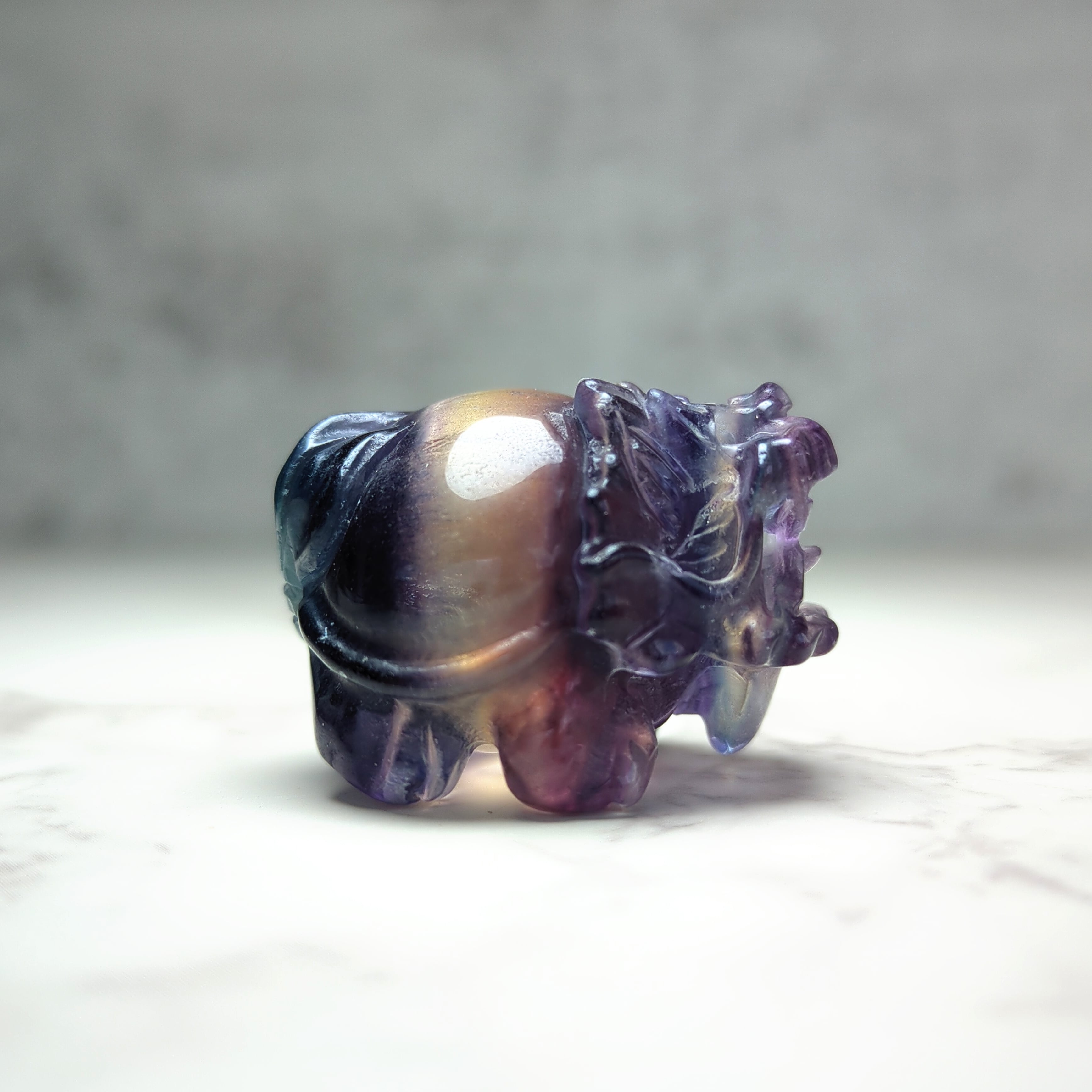 ピンク、紫、緑、青などが層状に混ざり合って、その美しさから「虹の石」としても知られています。