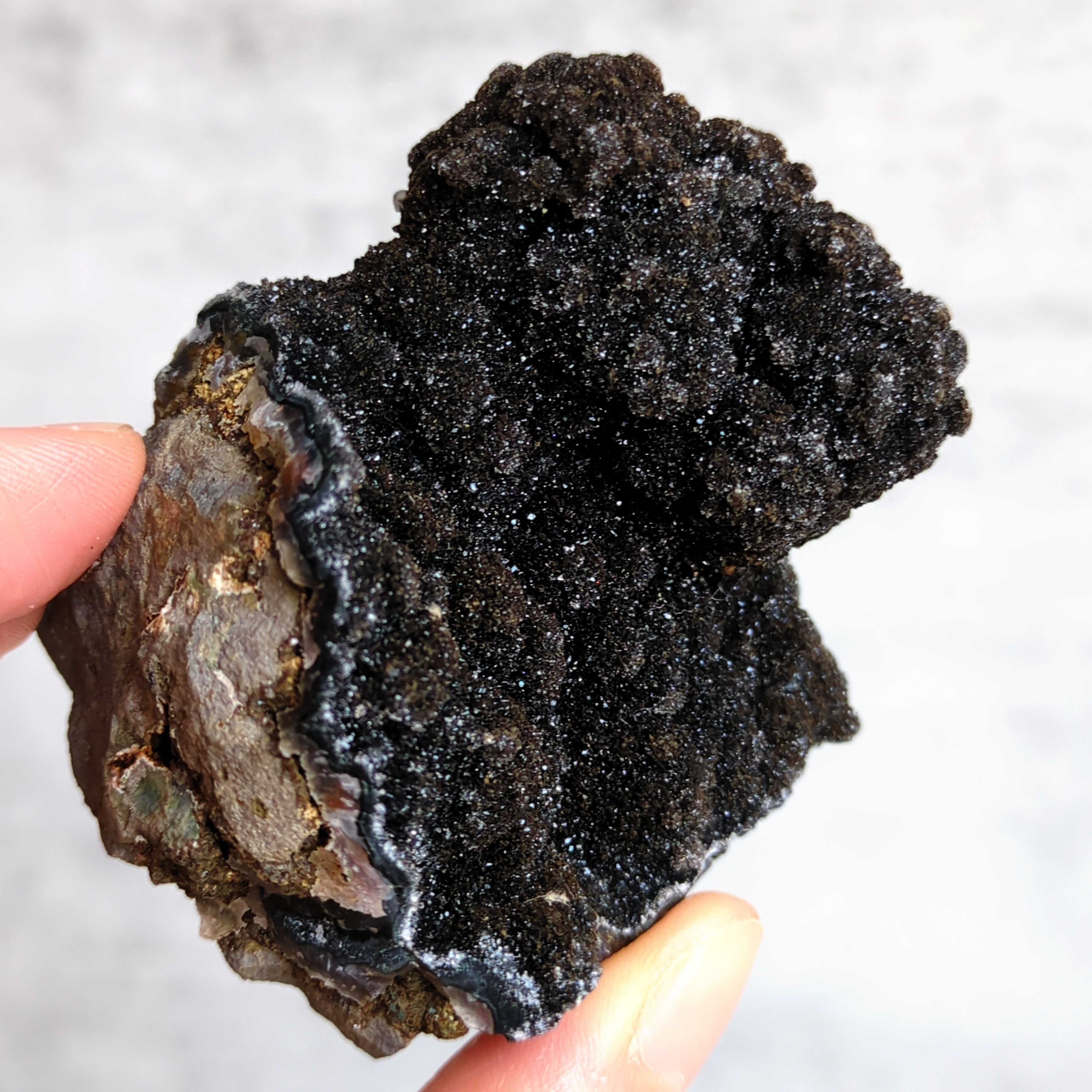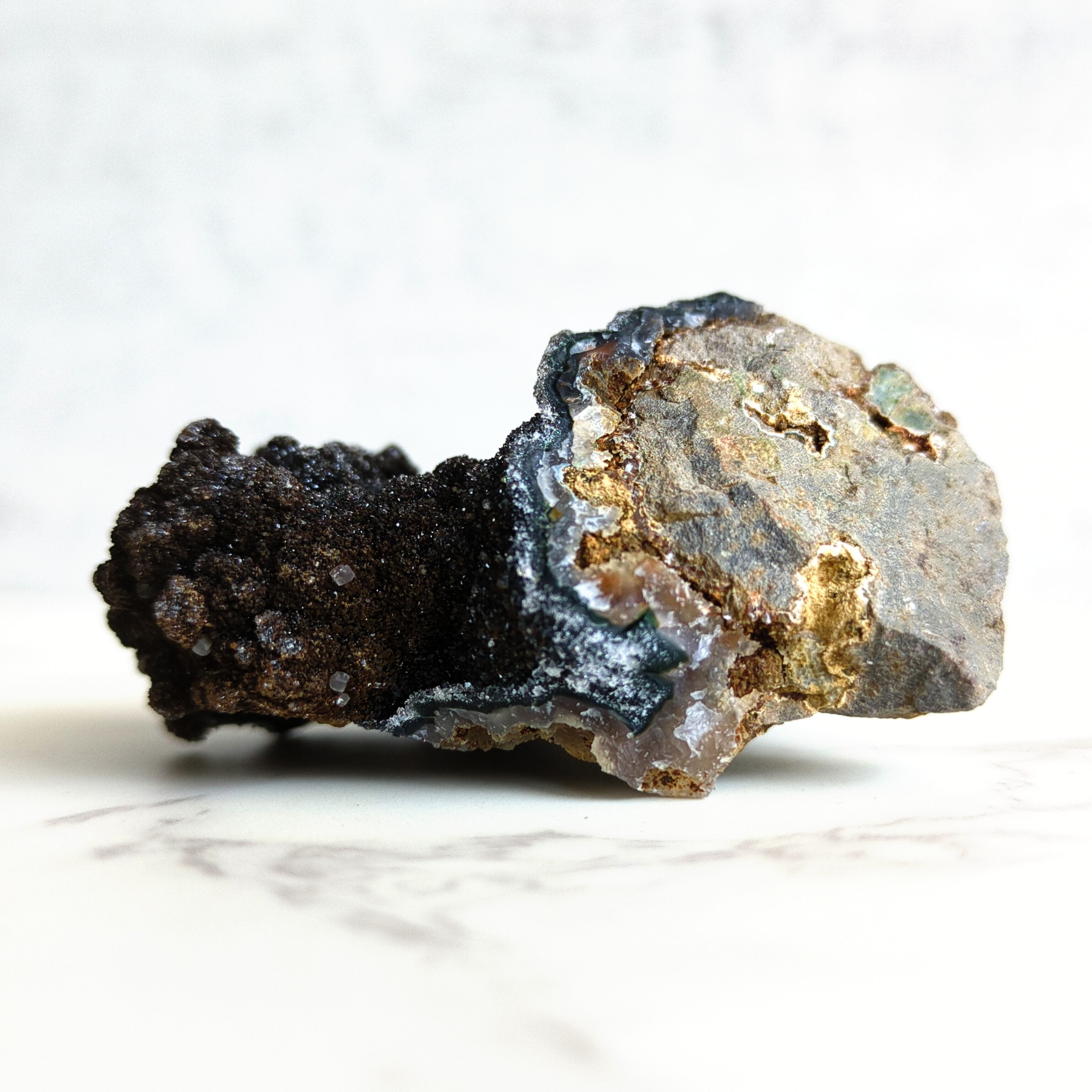 ブラウンがかったブラックの落ち着いた地色に、細かな結晶がぎっしり。