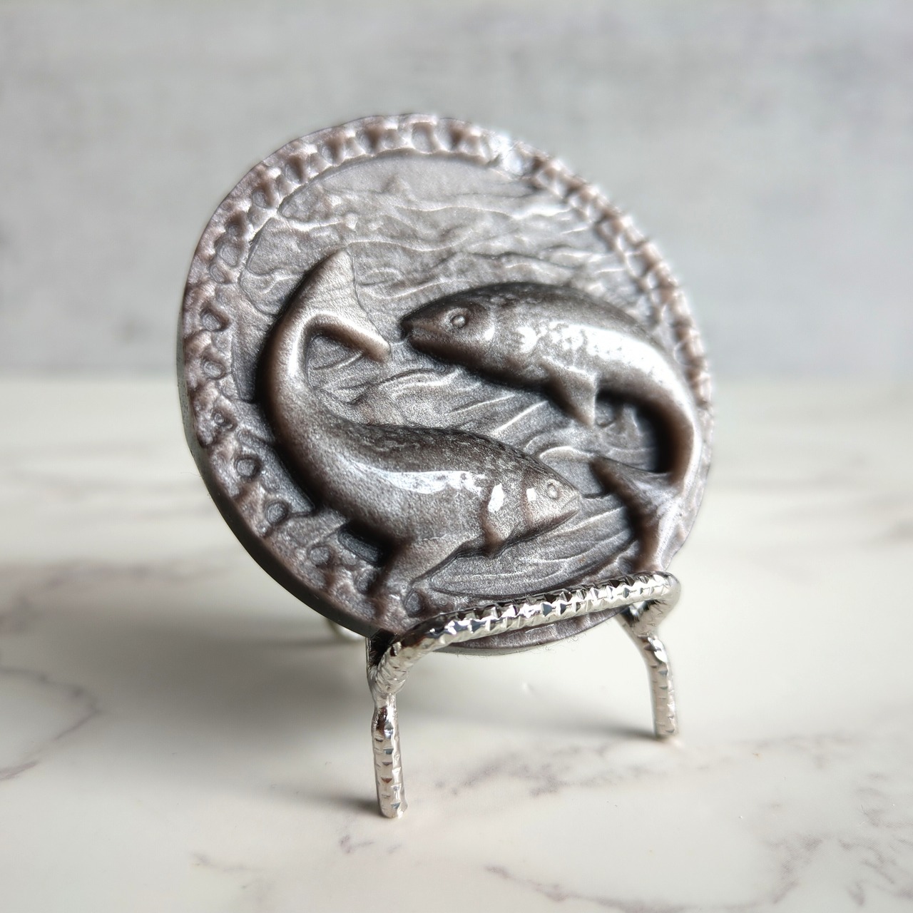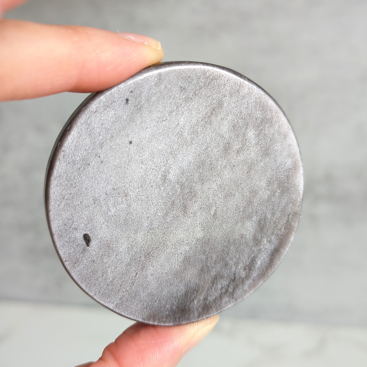 シックな光沢が美しい、シルバーオブシディアンの魚座プレートです。