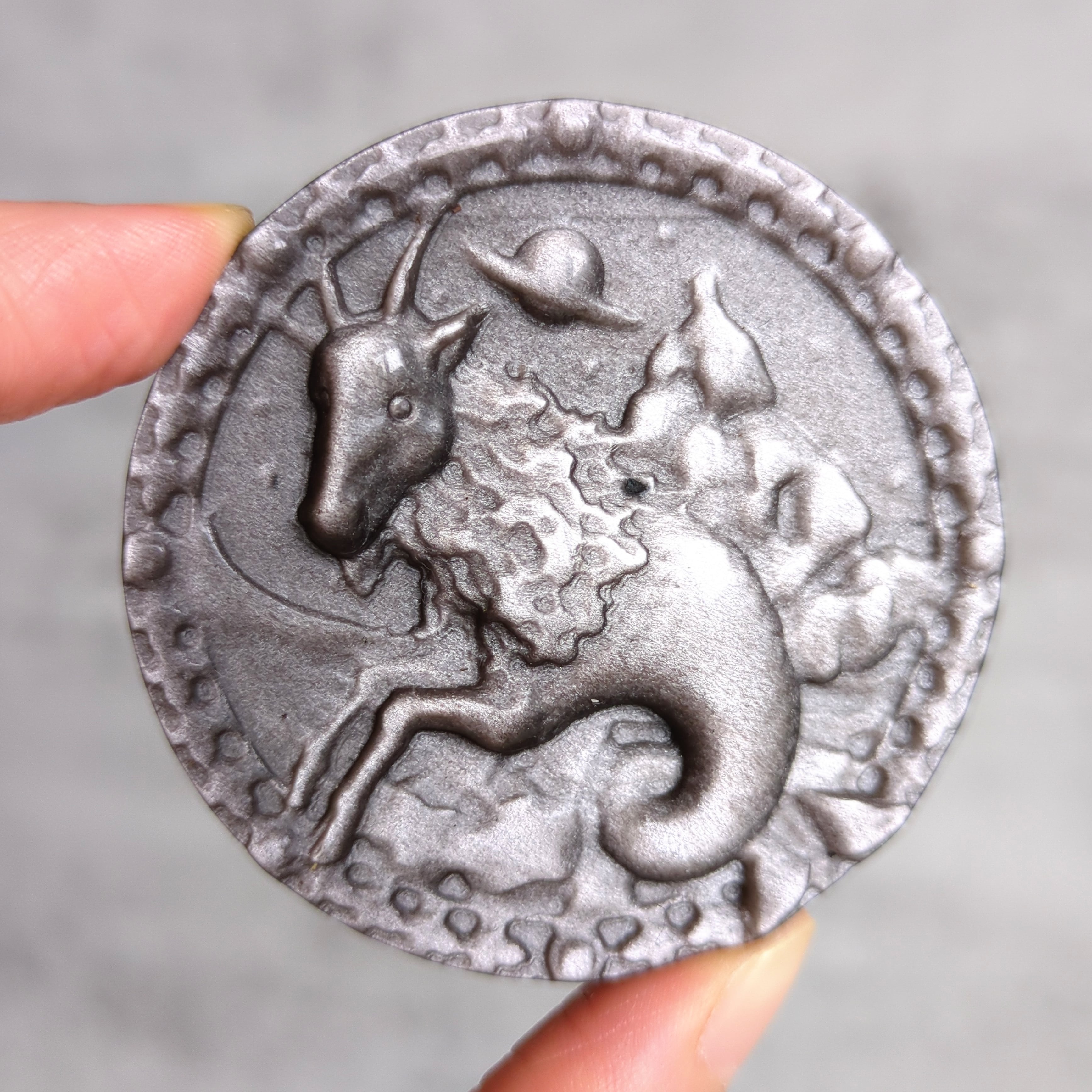 シックな光沢が美しい、シルバーオブシディアンの山羊座プレートです。