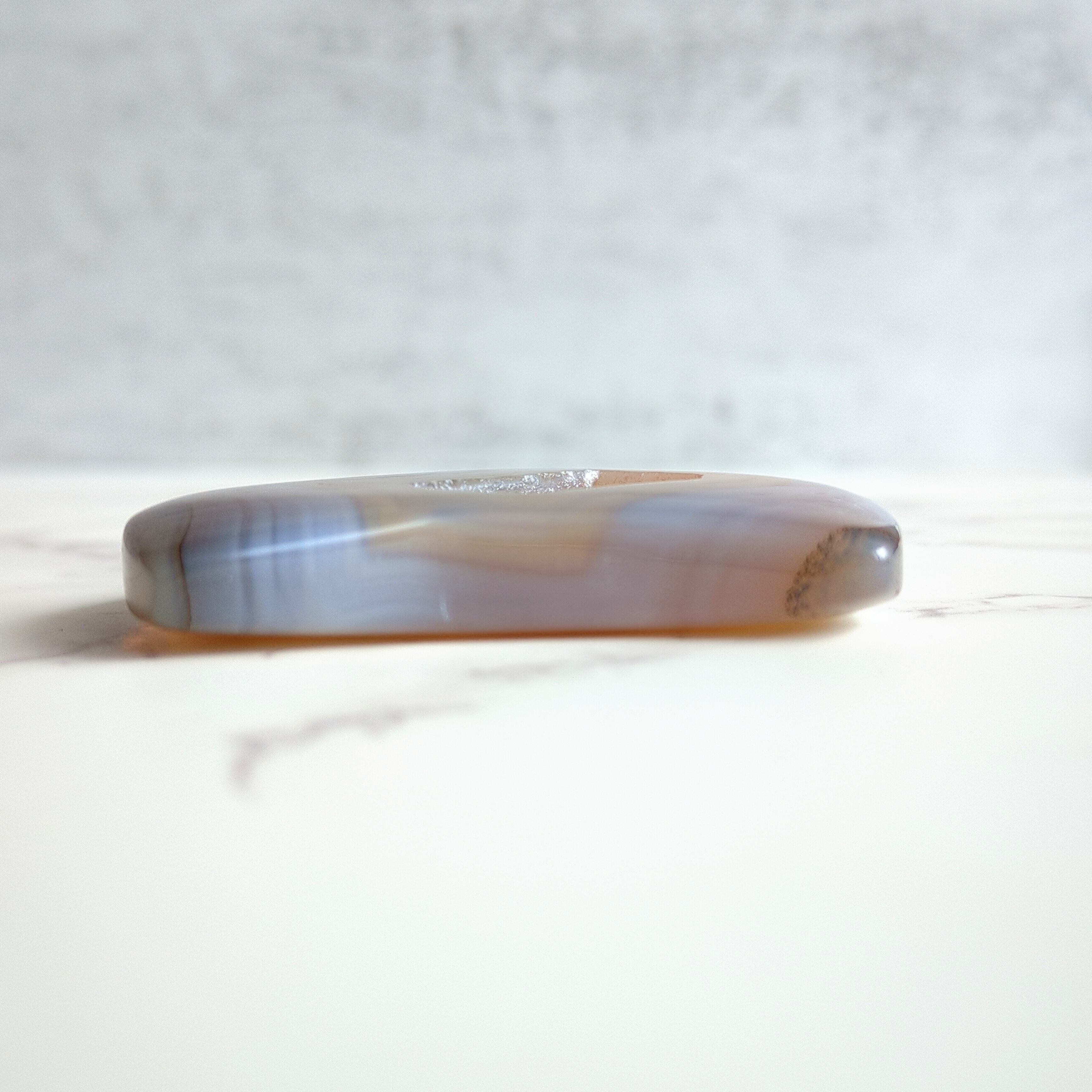 グレーとベージュの繊細なグラデーションとアゲートのラインが幻想的なピース。