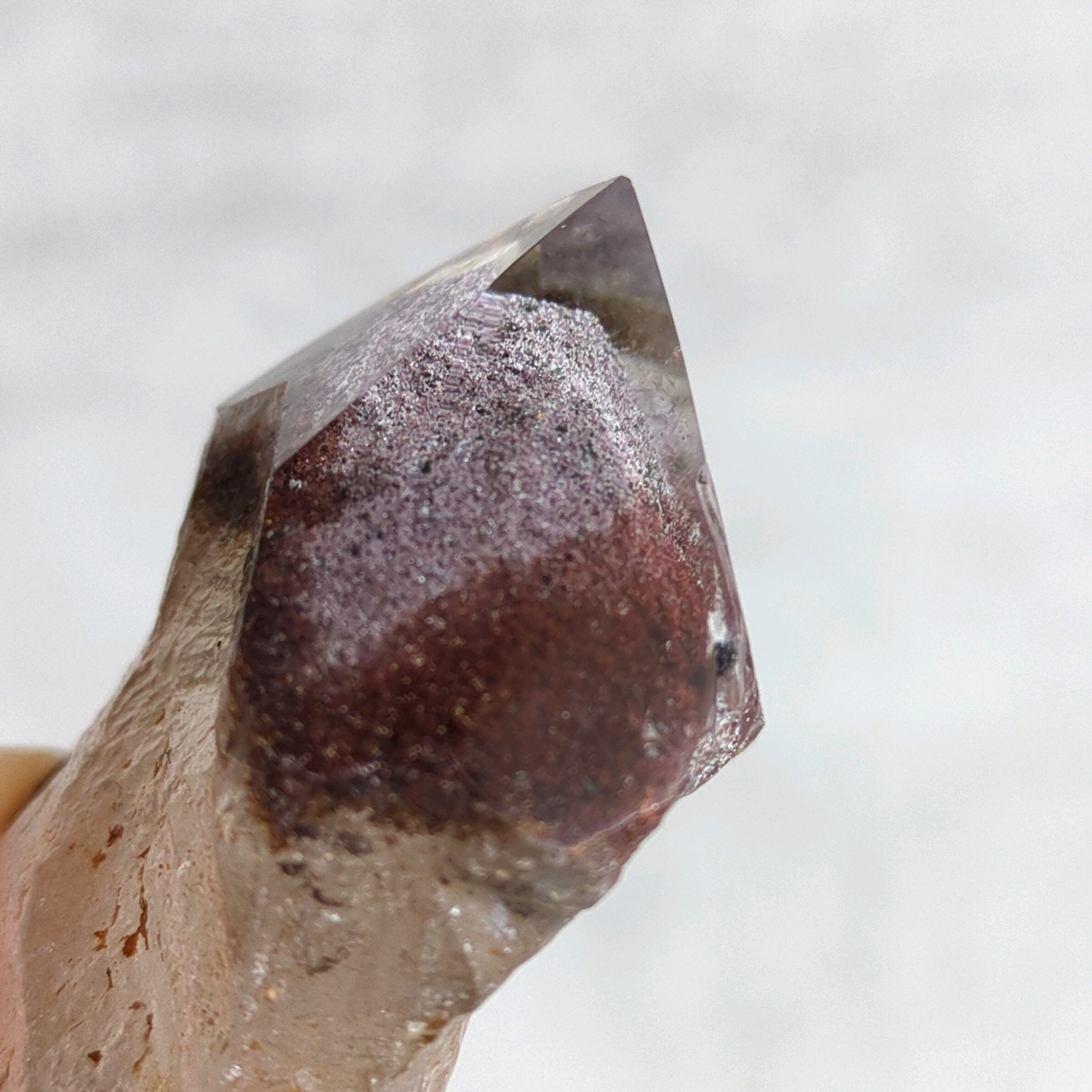 クリアなクォーツの中にグレーパープルのファントムがしっかりと入った美しいピース。