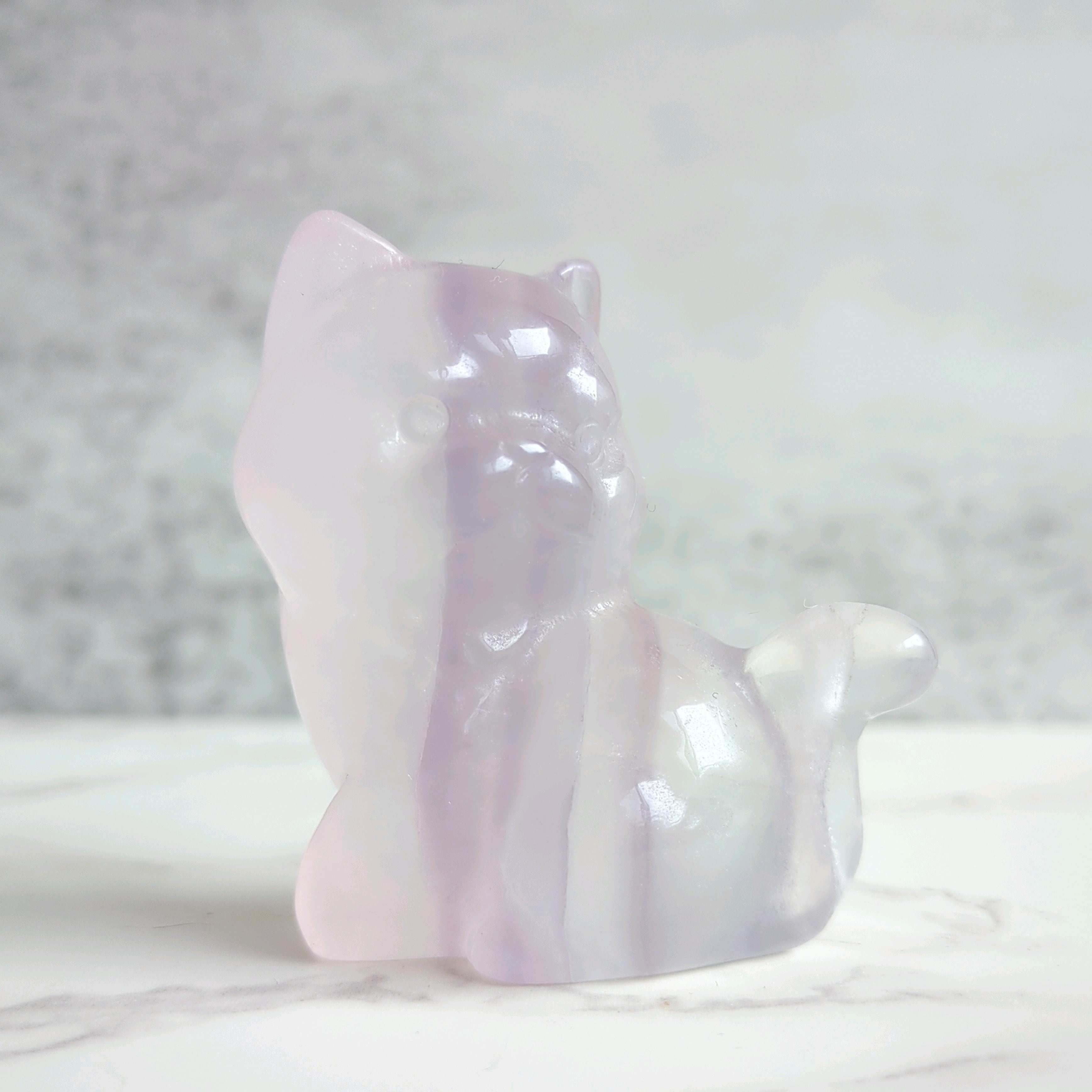 透け感のあるラベンダーカラーが美しい、二頭身のむちっとした猫さんです。