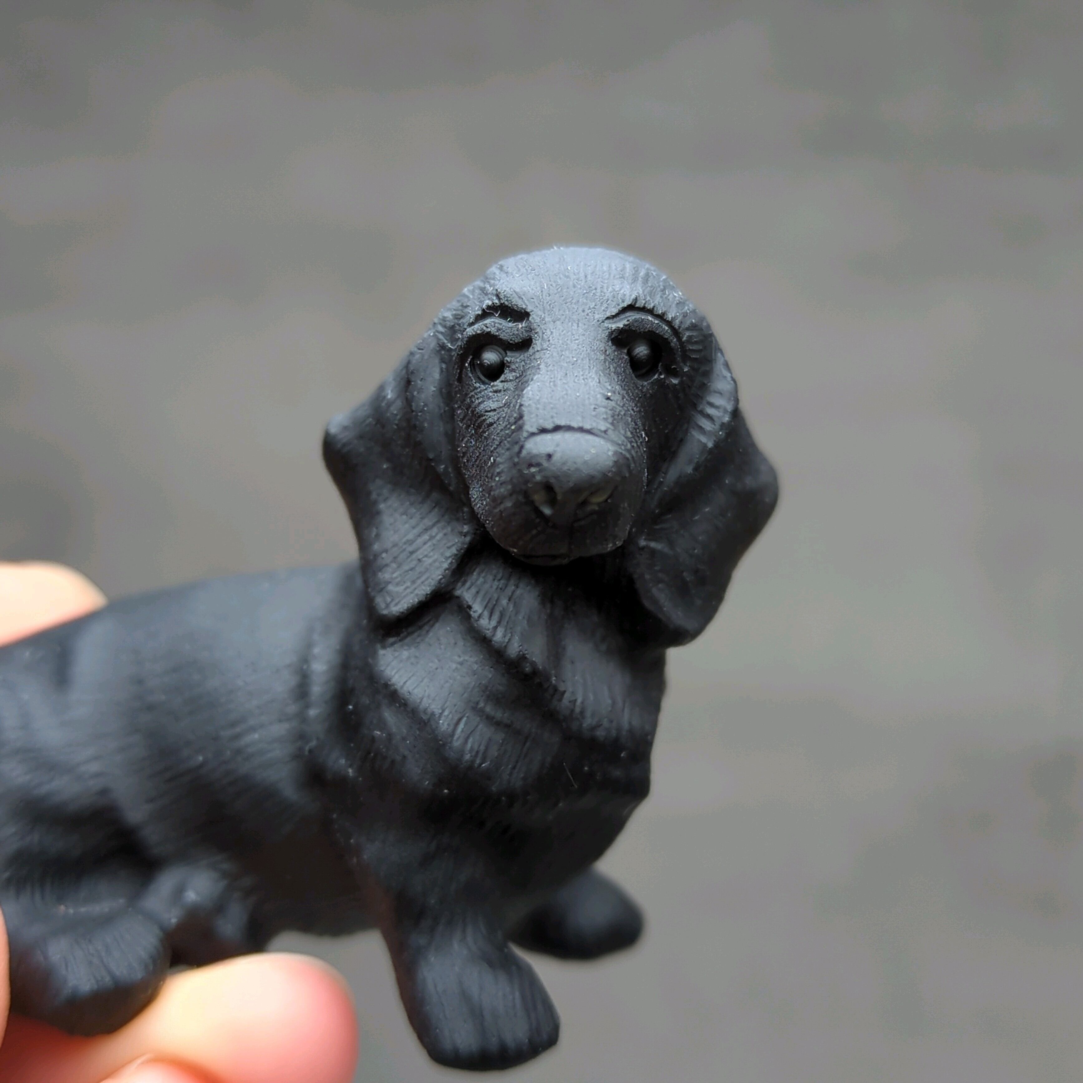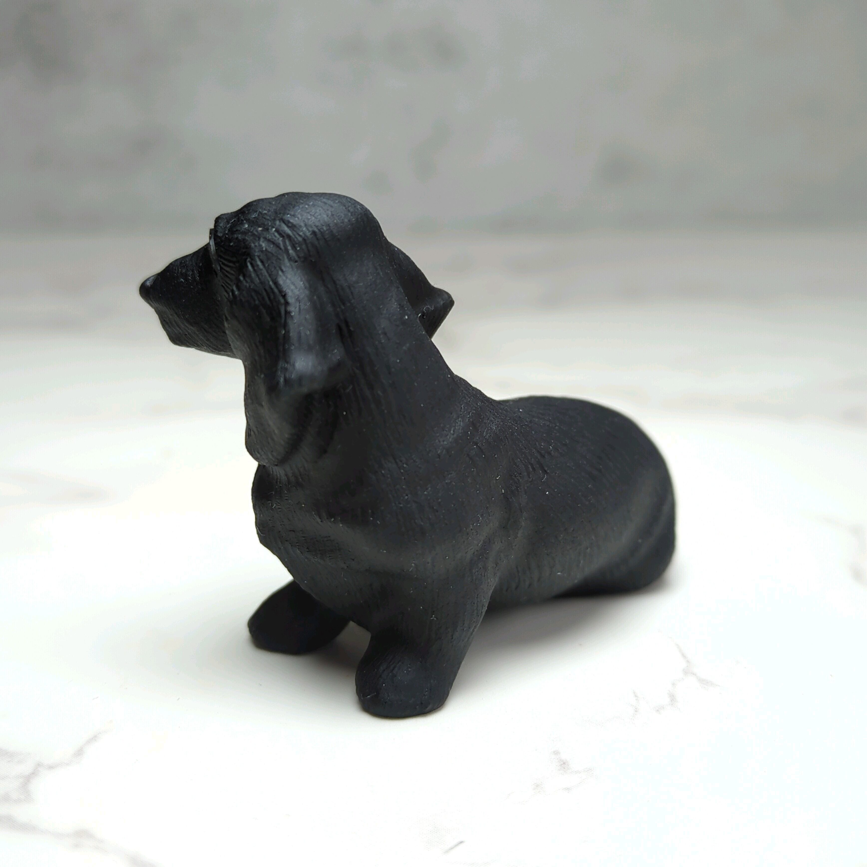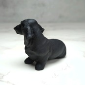 リアルに再現されたフォルムと質感が美しい、オブシディアンのミニチュアダックスさんです。