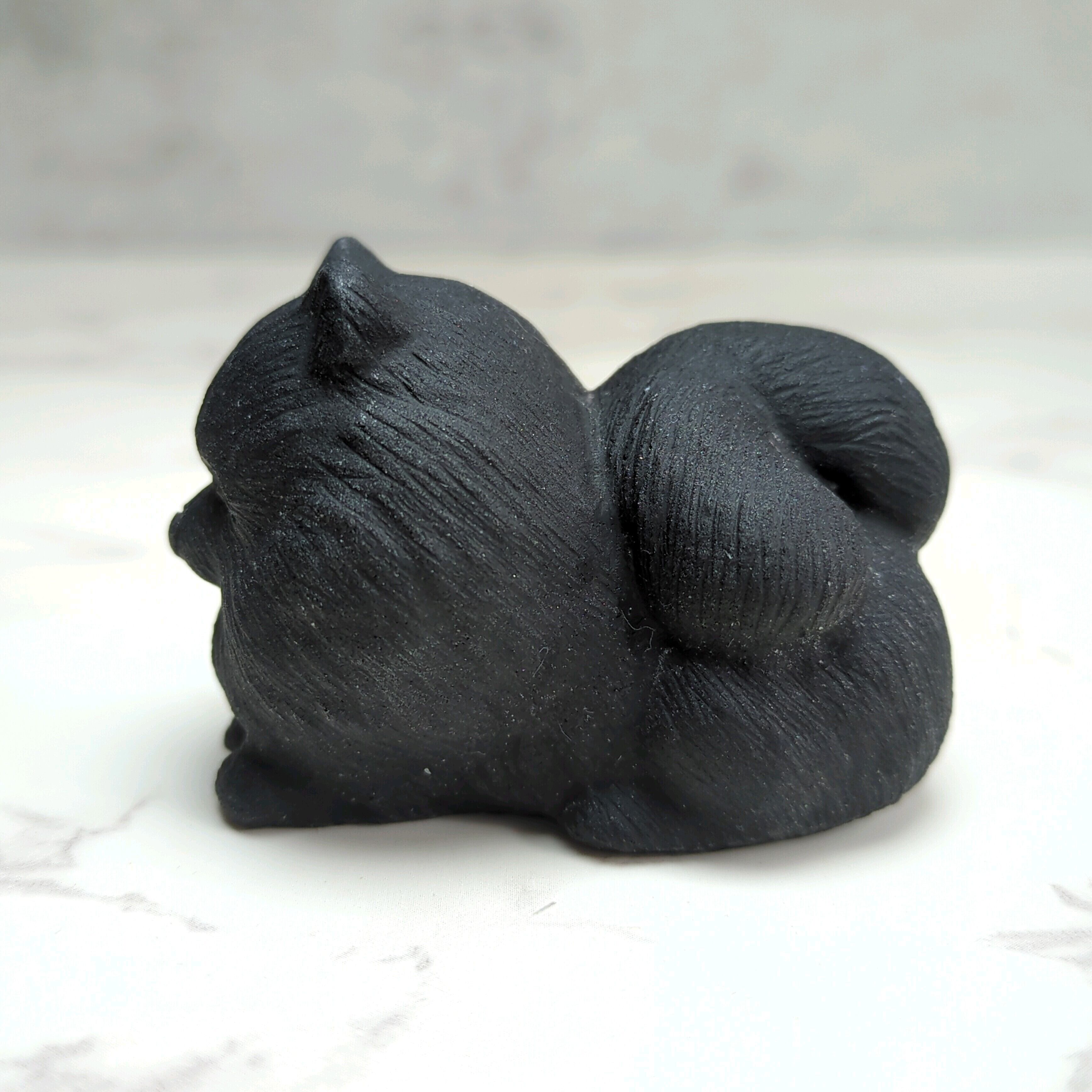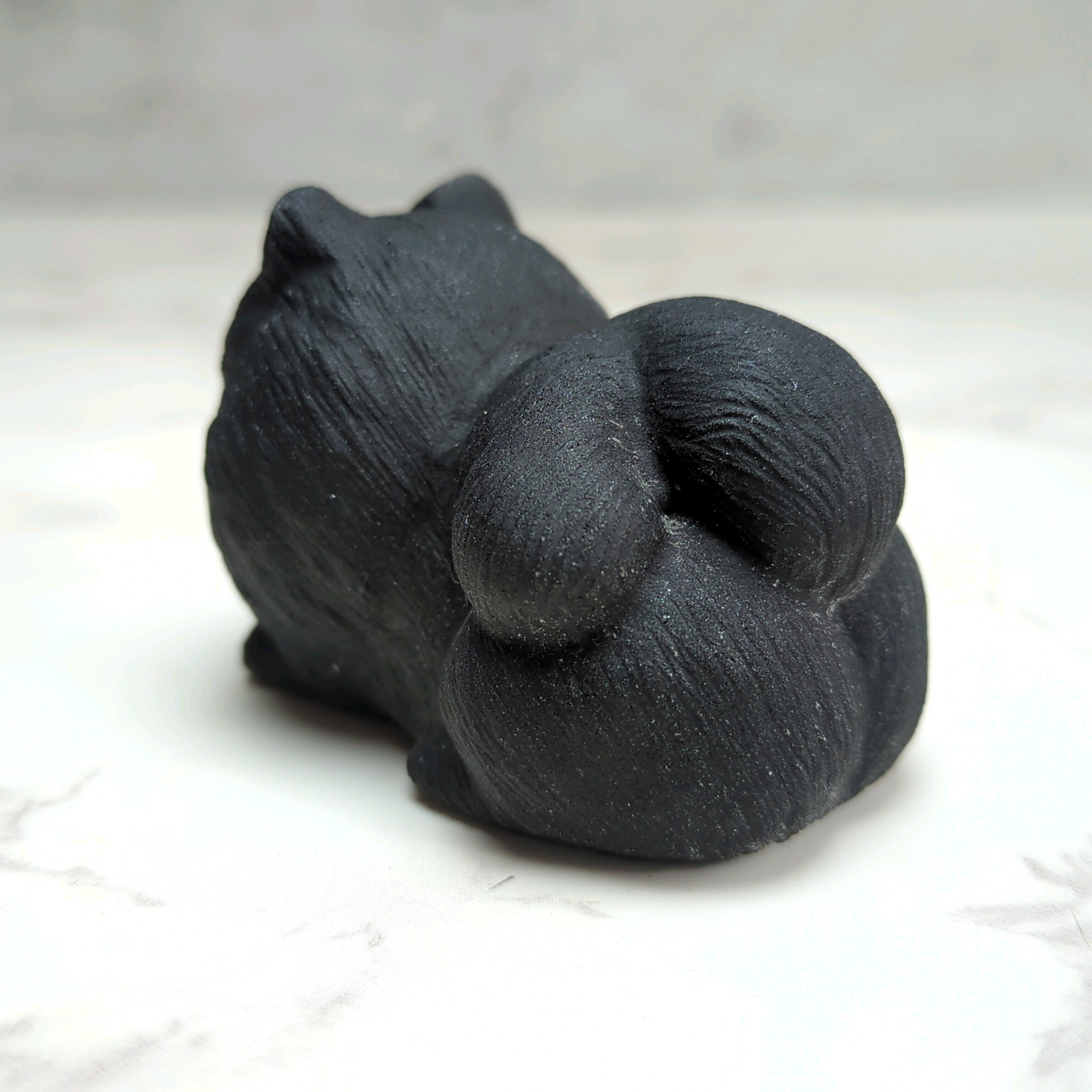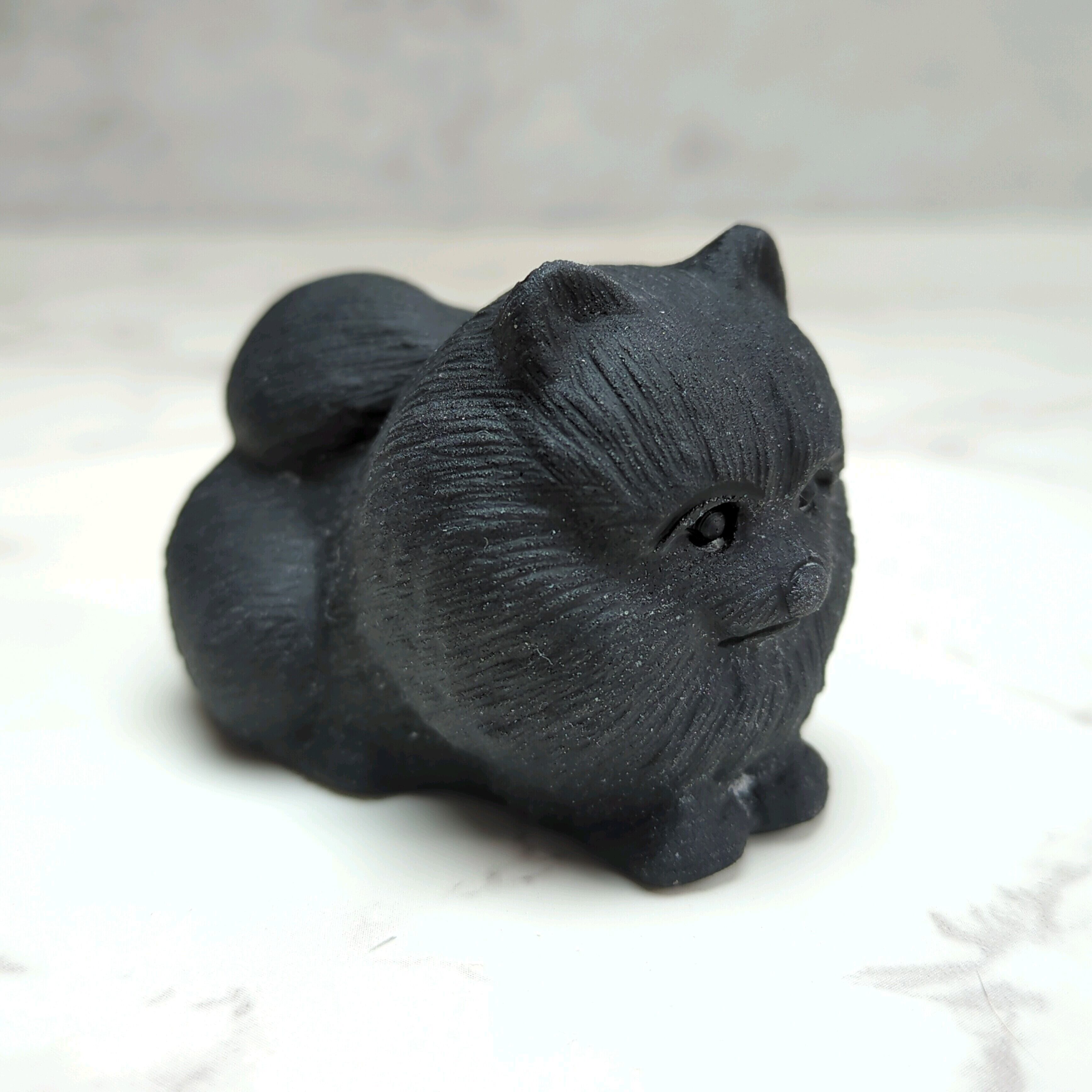 リアルに再現されたフォルムと質感が美しい、オブシディアンのポメラニアンさんです。
