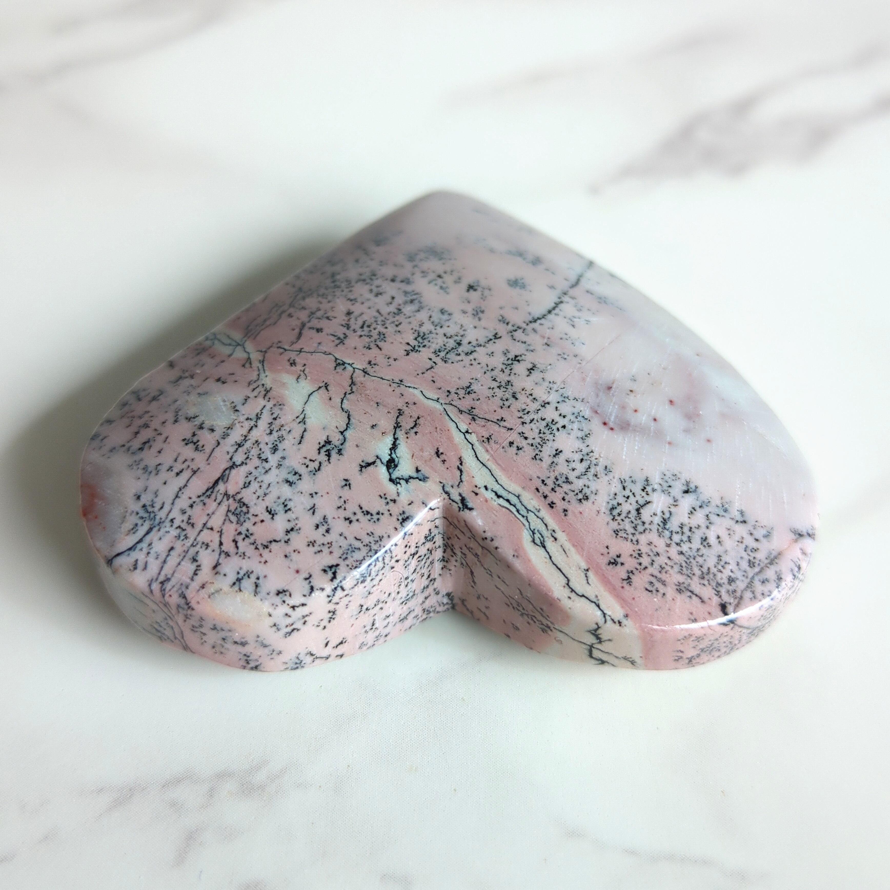落ち着いたピンクのマーブルの中に木の枝の模様のような柄が繊細に混ざり合った、アート作品のような上品なピースです。