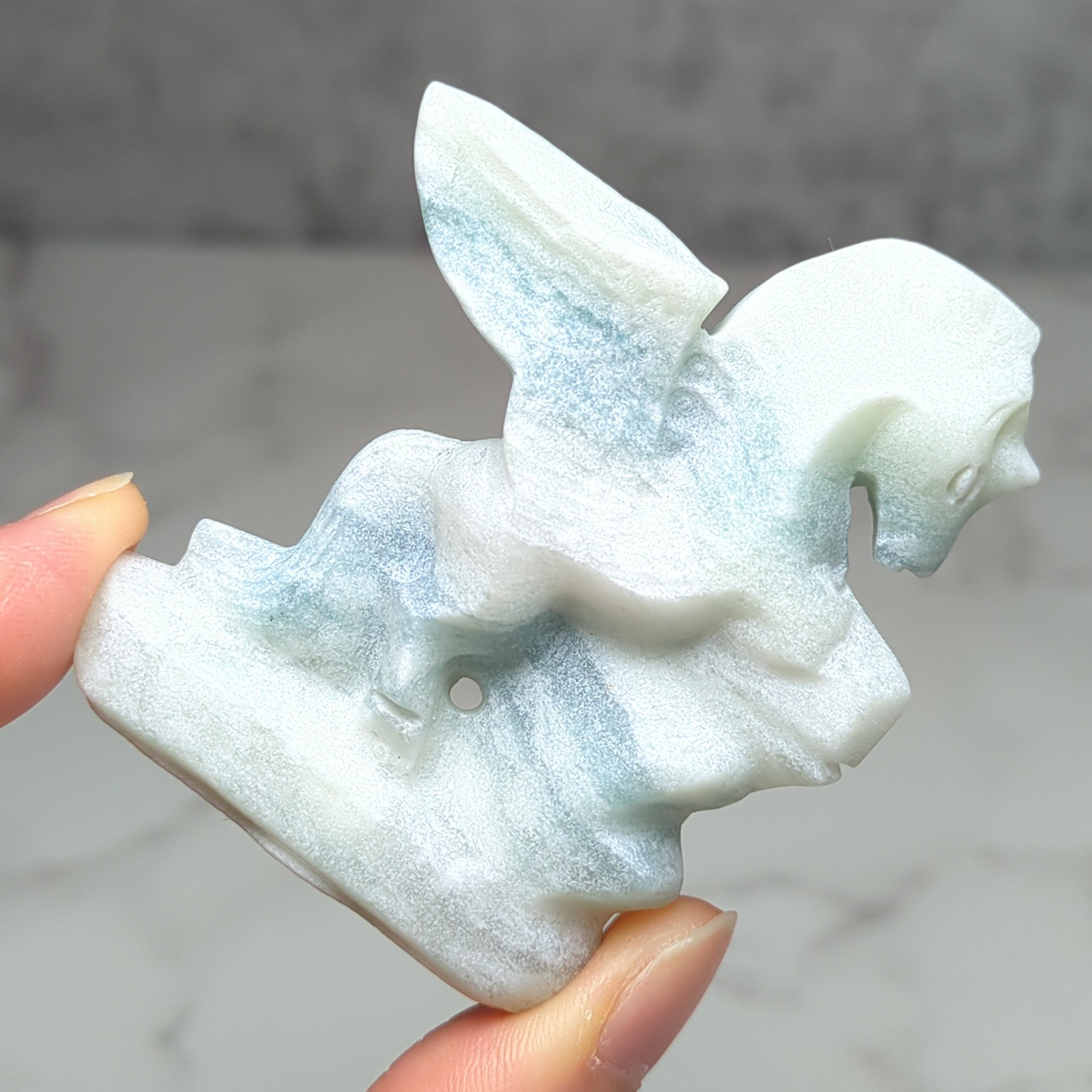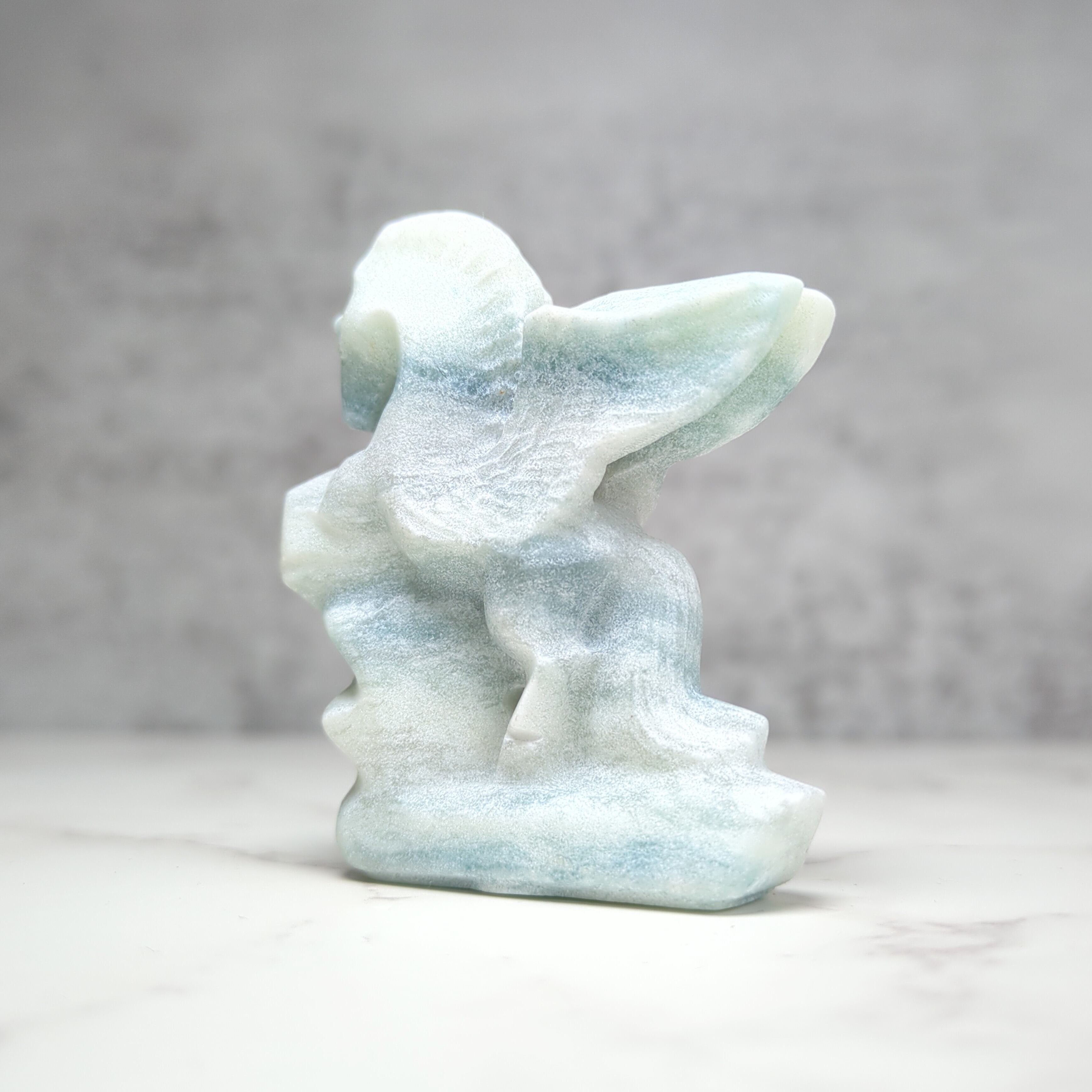 やわらかなブルーとホワイトのマーブル模様が穏やかで、神殿に祀られている彫刻のような神聖さを感じます。