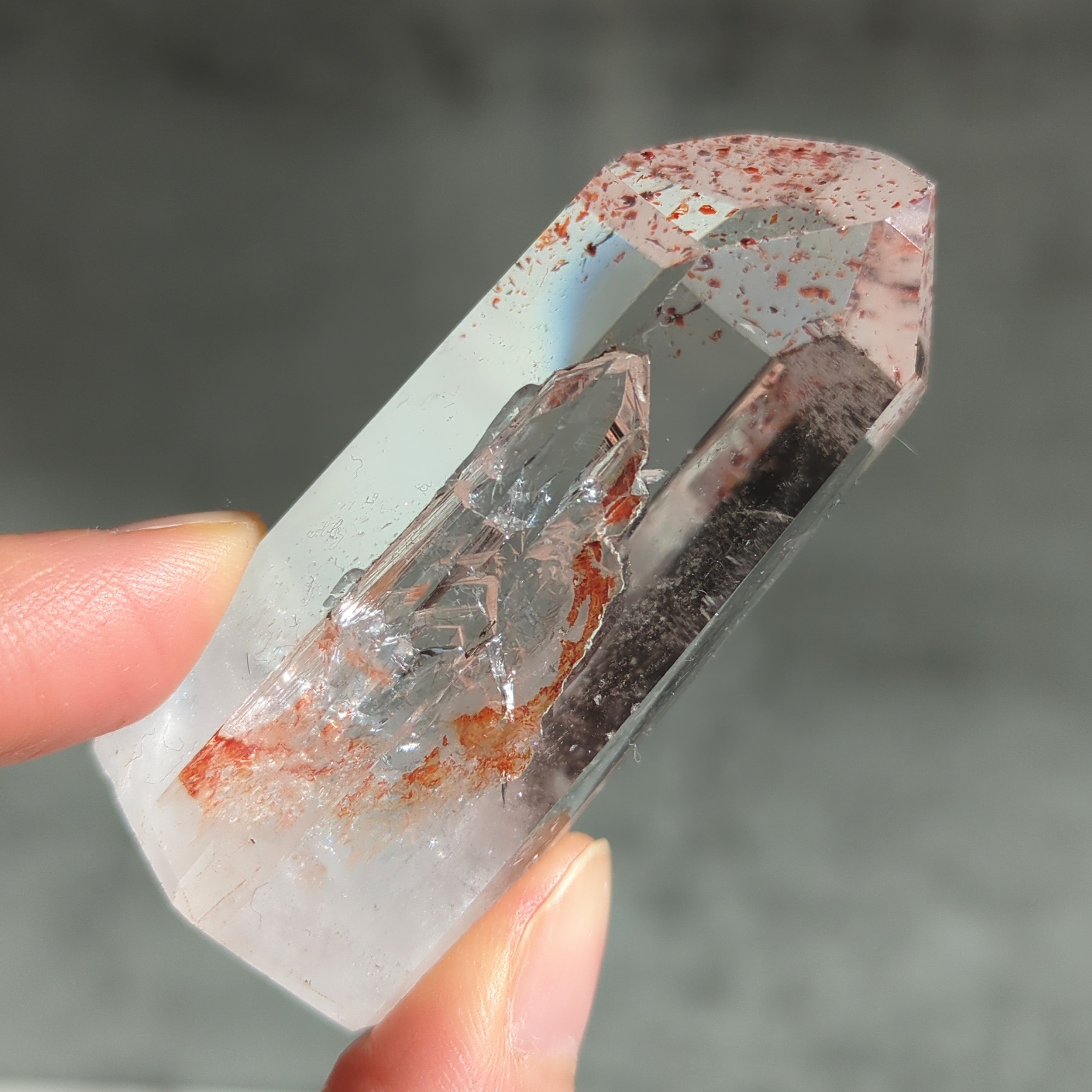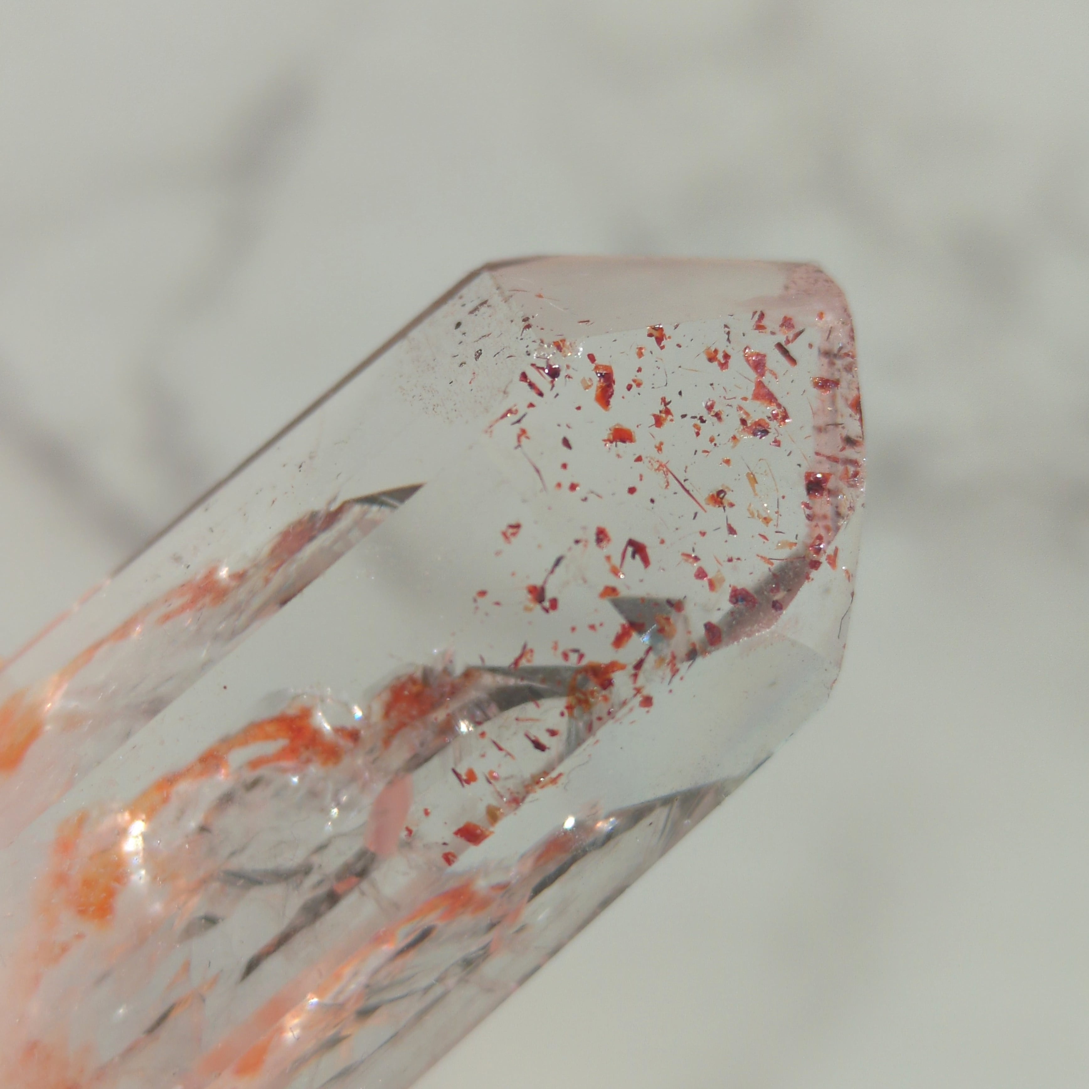 ヘマタイトインクォーツは、水晶の成長過程でヘマタイト(赤鉄鉱)が内包、または被膜として共生した鉱物です。