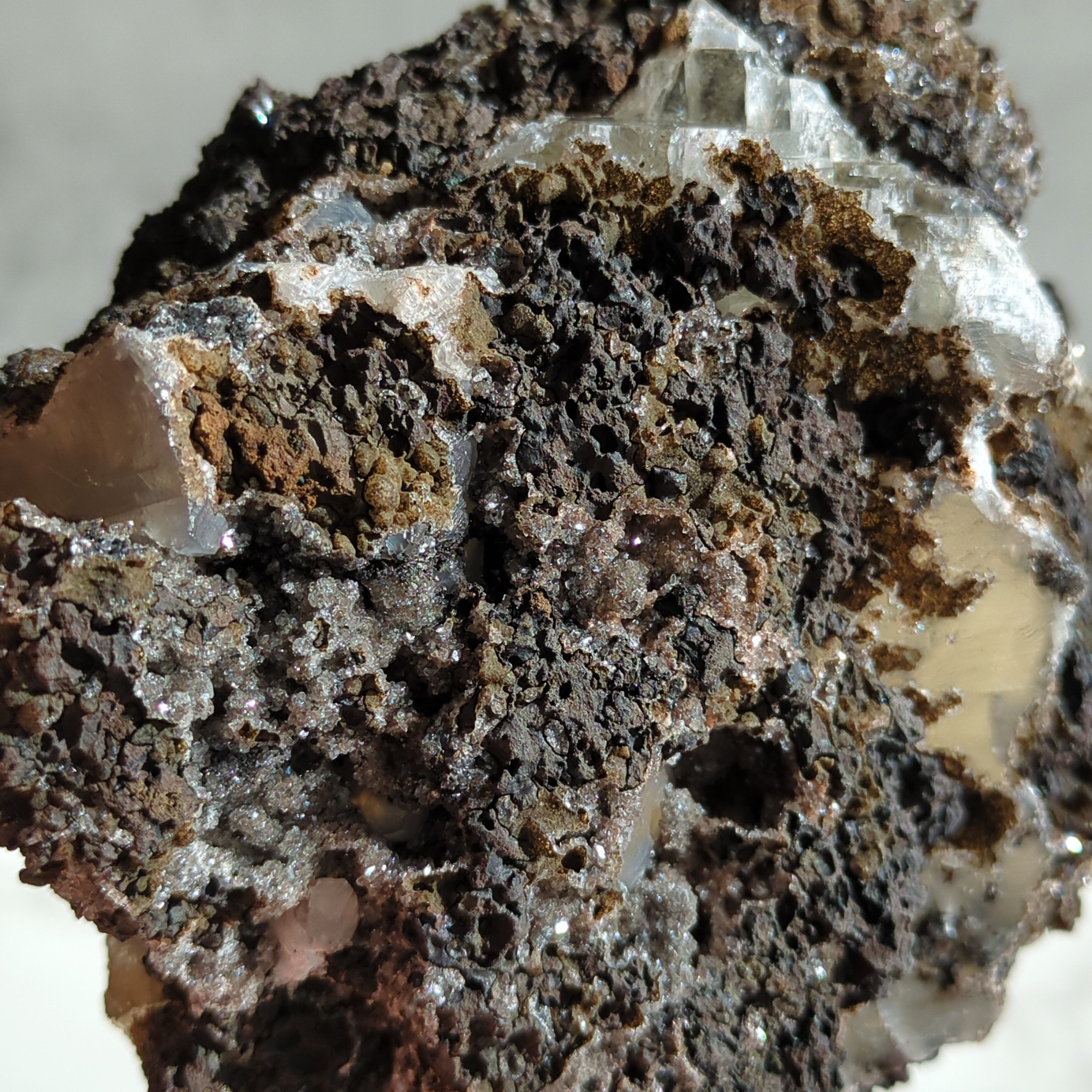 透き通る中を除くと、カルセドニーの結晶が無数に煌めく幻想的な世界が広がります。